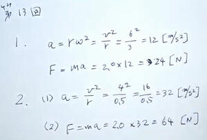 | <地上の人から見ると> この人はドアから押されています。 その力が向心力となって、円運動をしています。 向心力の大きさは |