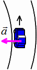 左に回るカーブを回っているとしましょう。座席に乗っている人は身体が右に引っ張られます。これが遠心力です。もちろん身体を引っ張っている物体は存在しません。 遠心力も慣性力の一つですから、車の運動の加速度が であれば、身体が受ける遠心力は、 です。たしか円運動の加速度の大きさは なので遠心力の大きさは ここでv は自動車の速さ、r はカーブの半径であり,m は身体の質量です。 |