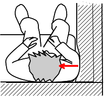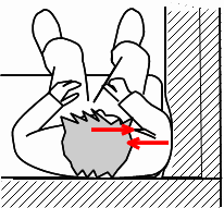 | <車内の人から見ると> 右向きに遠心力を受けます。 遠心力の大きさは ドアから押される力とつり合い、自分は静止しています。 |